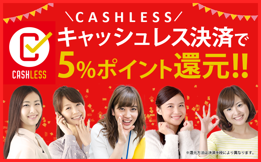 キャッシュレス決済で5%ポイント還元!