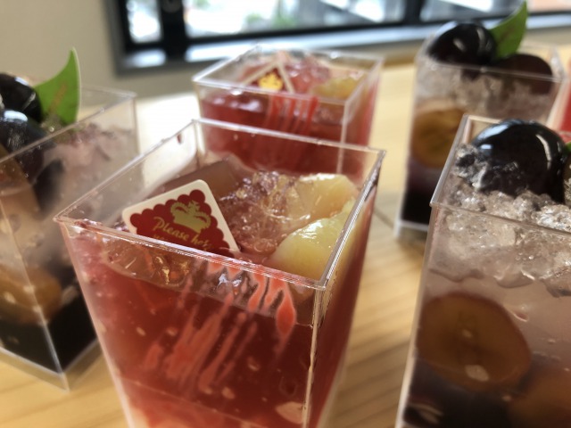 今回のスイーツはこちら!ピーチメルバとピオーネのカップデザートです♪