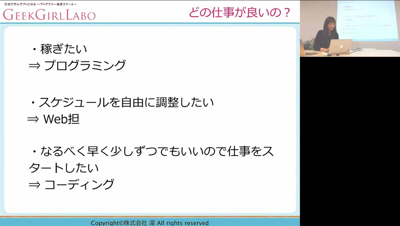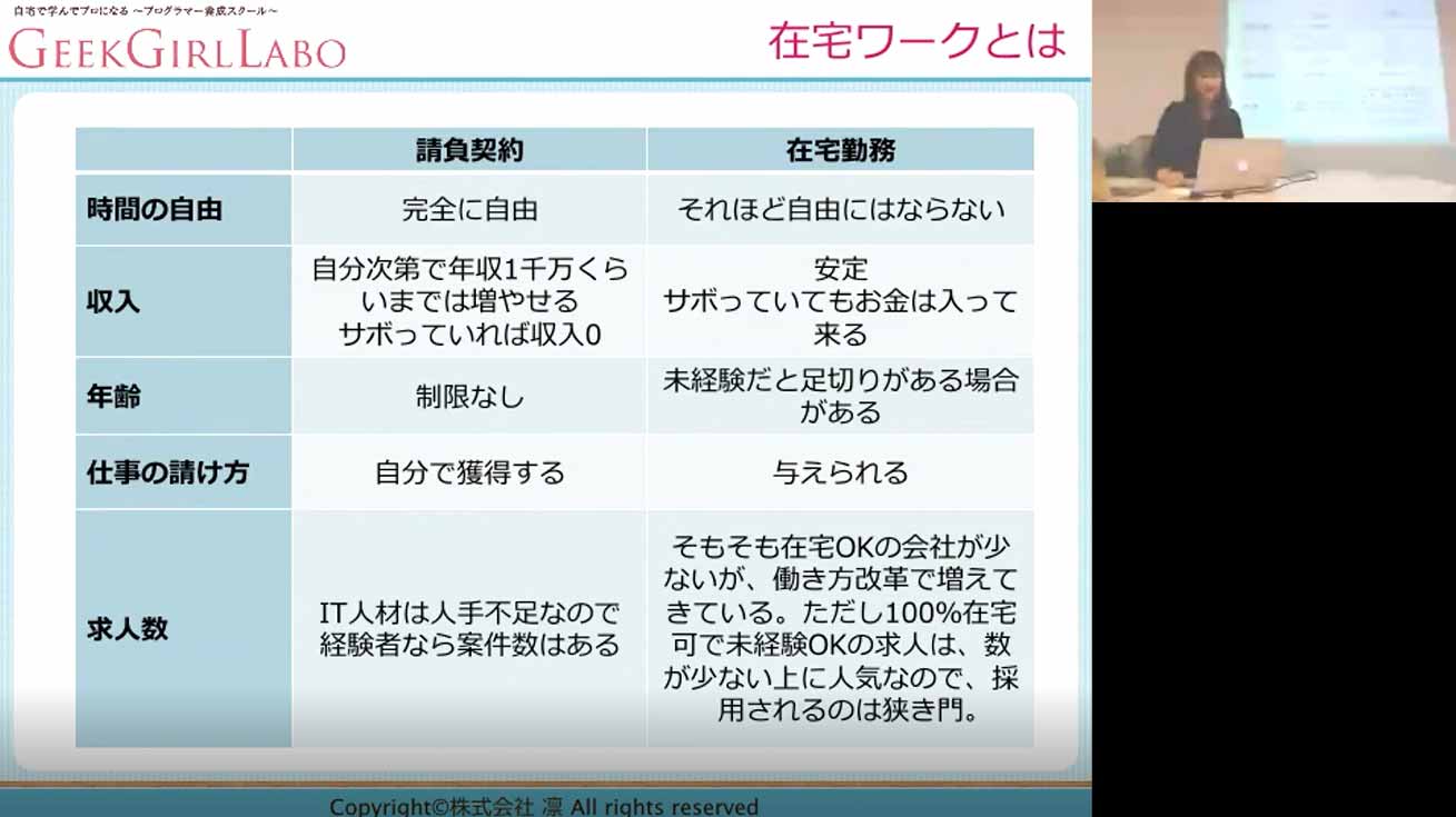 GeekGirlLaboでは実際に、在宅で働くためのスキルを学べる在宅ワークコースがあります。