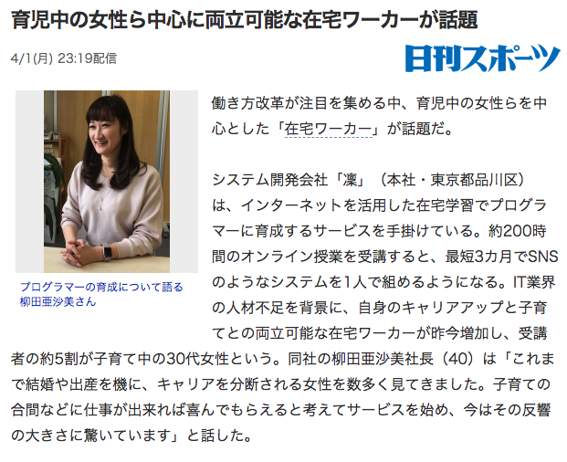 GeekGirlLabo 代表・柳田が取材にお答えした記事が5/14の東京スポーツに掲載されました。 オンライン版はこちら https://www.toky […]